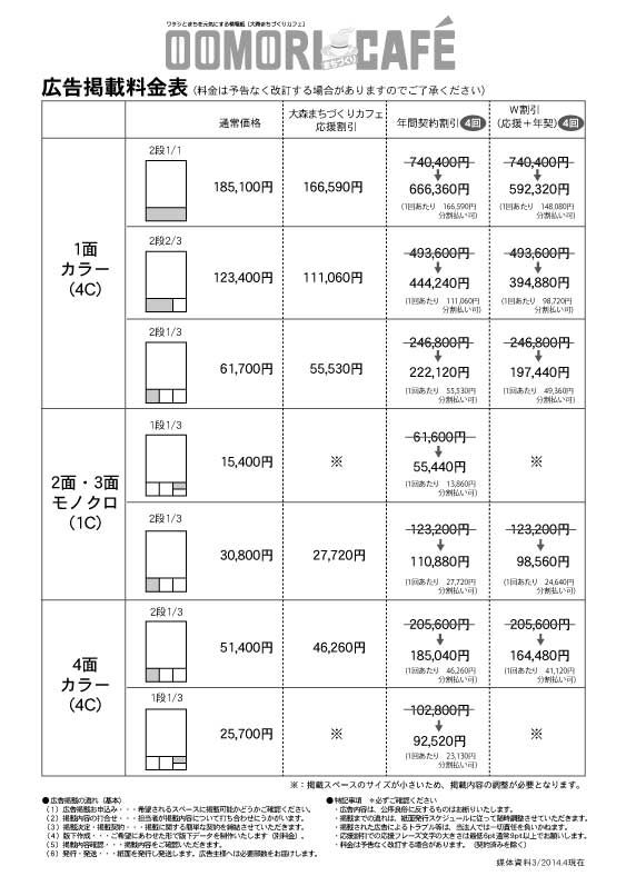 「活動応援割引」「年間契約割引」等割引もあります!版下の制作も承ります!